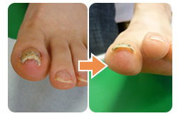 踏み込むたびに痛みが出るということで来院されました。まだ、炎症は起こしていませんがこの方の爪はかなり硬いです。