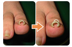 内側に巻き込むようなタイプの巻き爪です。通常と同様にワイヤーは入れ矯正を行います。